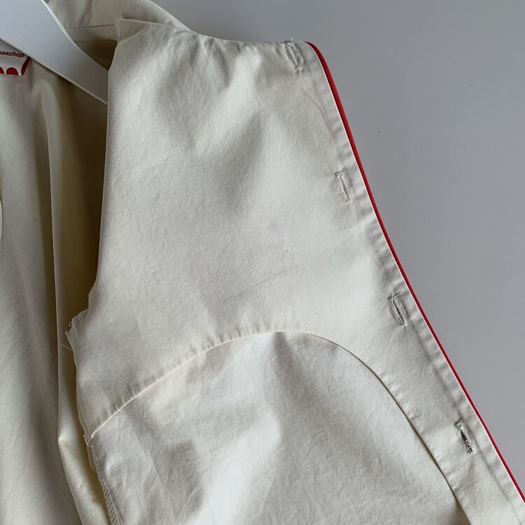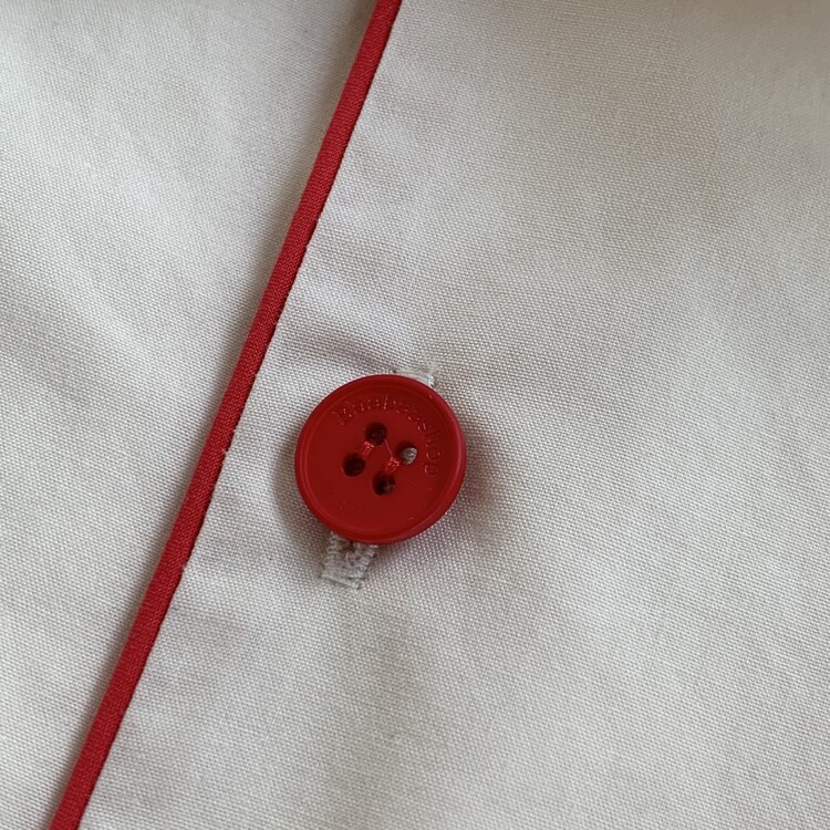 Baabaashop 로고가 새겨진 단추를 달아 레드파이핑과 함께 포인트를 주었습니다.