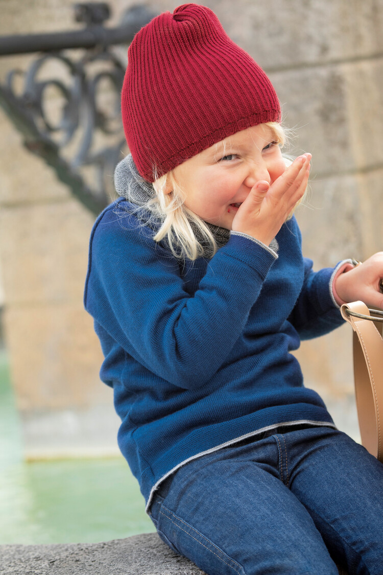 Quite simple with a classic cut, but a distinctive design and quality. We manufactured disana’s knitted jumper as a so-called embed product. It is finer and lighter as other knitted fabrics. It’s not only comfortable to wear but you can also combine the jumper to almost every other garment due to its timeless design. The fringe of contrasting colour on arms and body give a modern and fresh look to our favourite classic.