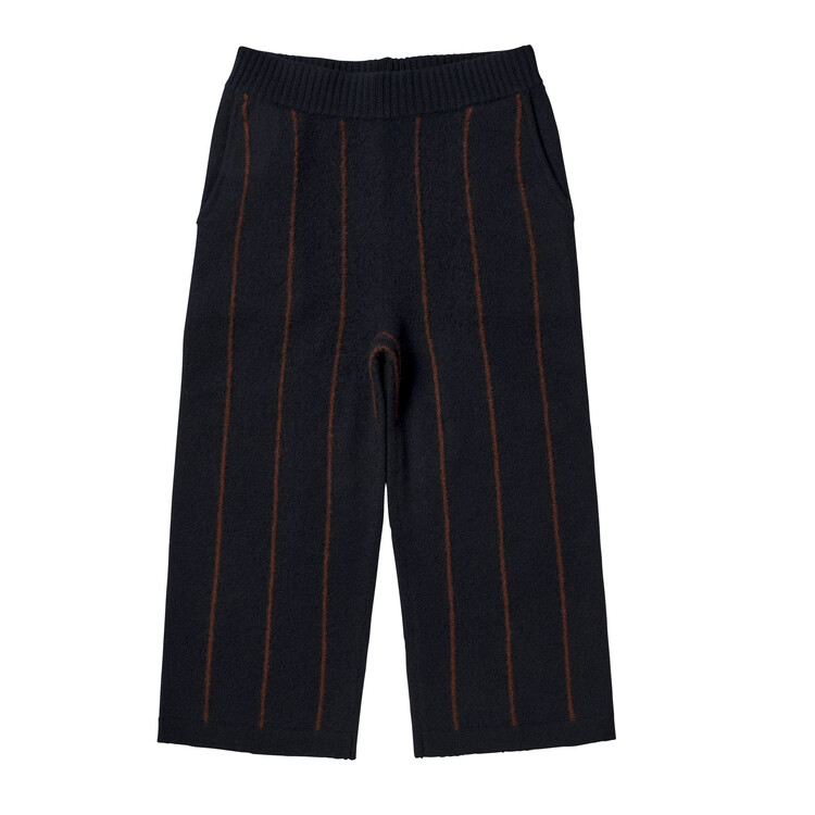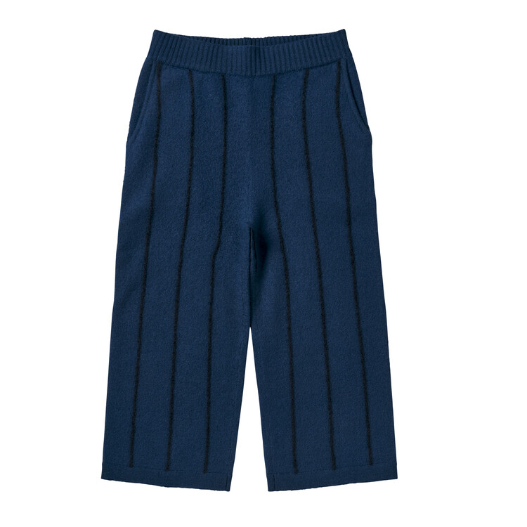 Made from pure merino wool these felted pants feature clean folded hems, side seam pockets and an elasticated waistband that ensures a comfortable and adjustable fit. These slightly cropped pants have a straight relaxed fit. They are designed with stripes and made from our classic soft merino yarn but has been felted for a firm sharp appearance. Our felted merino wool is OEKOTEX and RWS certified, free from harmful chemicals and comes from non-mulesed sheep.