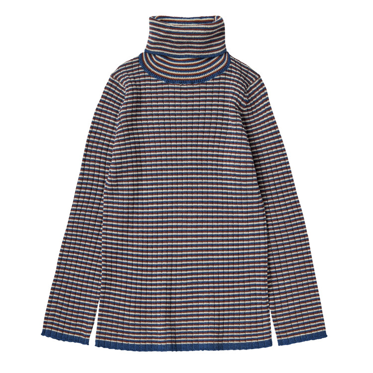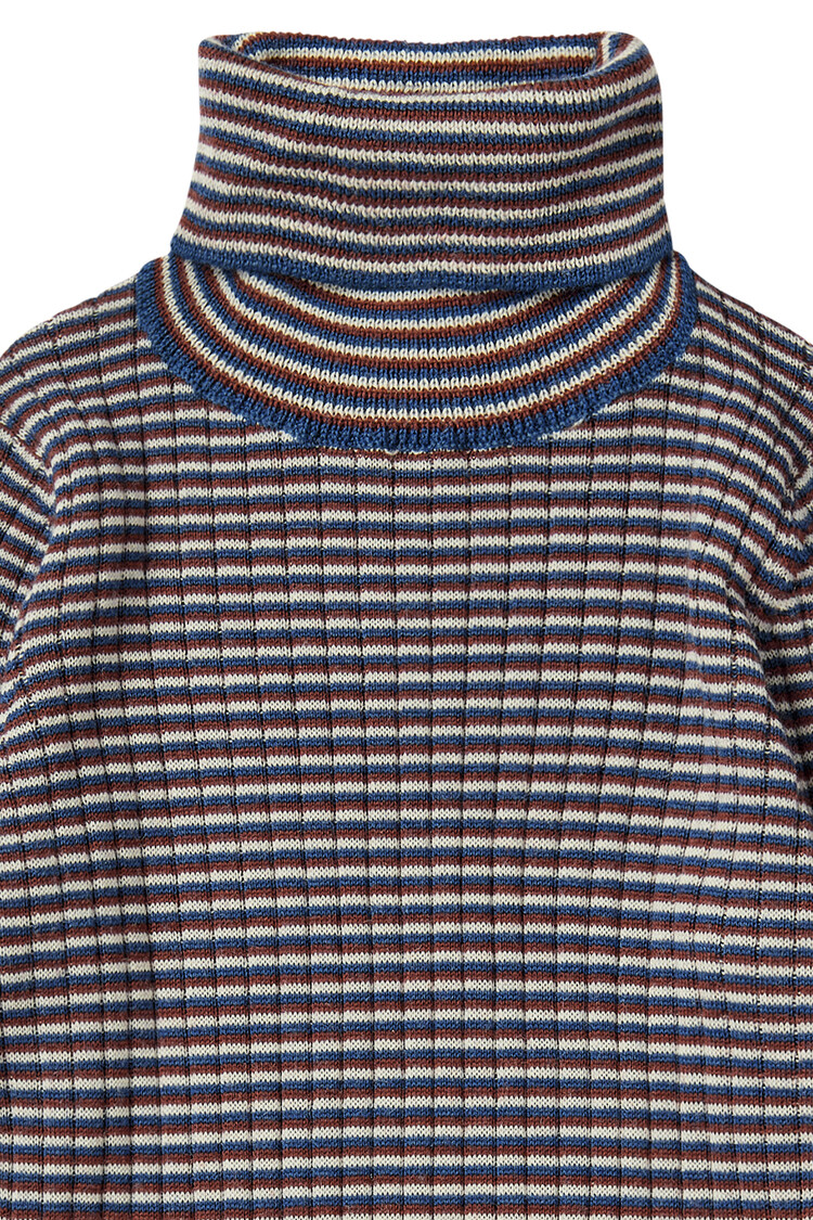 Knitted in an extra fine merino wool this blouse is designed with long sleeves and rollneck. It is knitted in a striped rib structure and has a straight slim fit. Our merino wool is BLUESIGN and RWS certified, free from harmful chemicals and comes from non-mulesed sheep.