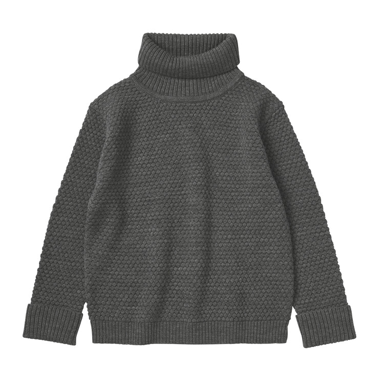 Knitted in a classic bubble structure, this sweater is designed with rollneck collar and turned-up rib hems at sleeves. This sweater is made from fine merino wool and has a relaxed fit. Our merino wool is BLUESIGN and RWS certified, free from harmful chemicals and comes from non-mulesed sheep.