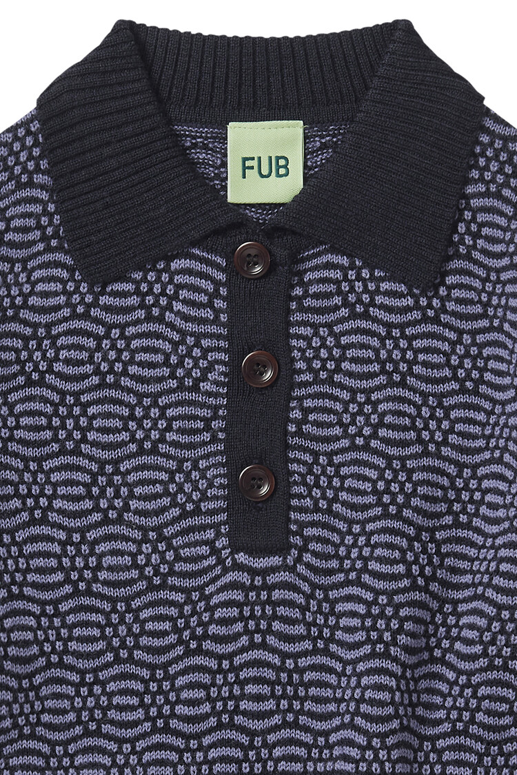 Made from fine merino wool, this long-sleeved polo has a relaxed fit. Detailed with a ribbed shirt collar, rib hems, and front button closure with corozo buttons. The polo is knitted in a graphic two-toned jacquard pattern. The buttons are made from corozo nut and are entirely biodegradable. Our merino wool is BLUESIGN and RWS certified, free from harmful chemicals and comes from non-mulesed sheep.