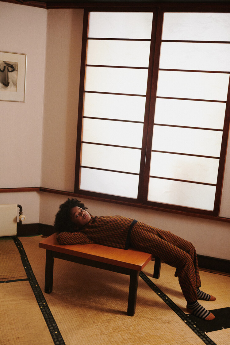 Made from extra fine merino wool, this long-sleeved polo has a slightly oversized fit. It features a flat shirt collar, folded hems, and a front button closure with corozo nut buttons. The polo is knitted in a graphic checked pattern. The merino wool is BLUESIGN® and RWS certified, free from harmful chemicals, and sourced from non-mulesed sheep.