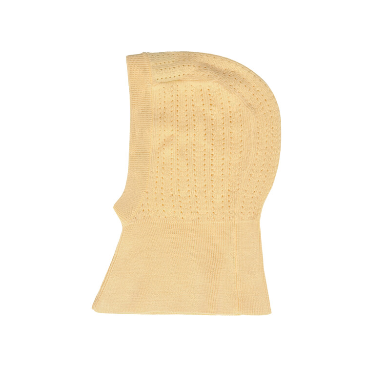 Knitted in a decorative pointelle pattern, this comfortable balaclava features a firm ribbed edge that fits neatly around the face. Its warm construction makes it perfect for cold days. Made from pure merino wool.The wool is BLUESIGN® and RWS certified, free from harmful chemicals, and sourced from non-mulesed sheep.
