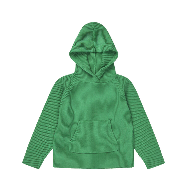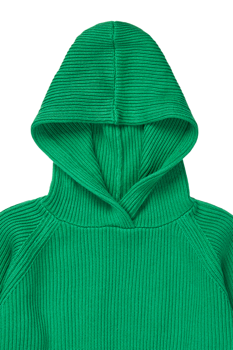 Knitted in a classic rib structure and made from organic cotton, this long-sleeved hoodie has a loose fit with raglan sleeves and a front patch pocket. The hoodie is designed with a spacious shape and is suitable for layering or to be worn on its own.