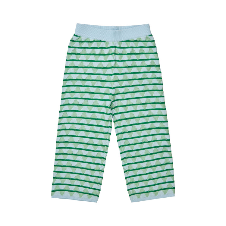 Made from organic cotton, and cut with a relaxed fit, low crotch, and straight legs, these trousers feature an elasticated waistband that ensures a comfortable and adjustable fit. The pants are knitted in a graphic jacquard structure and feature narrow ribs at bottom hems.