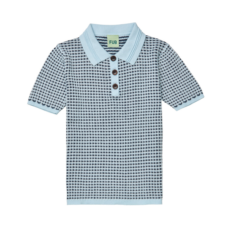 Made from organic cotton, this polo shirt is knitted in a graphic two-toned pattern. It is designed with short sleeves, a small contrast color shirt collar, front closure with corozo buttons, and narrow ribbed hems. The polo shirt has a regular fit. The buttons are made from corozo nuts and are entirely biodegradable.