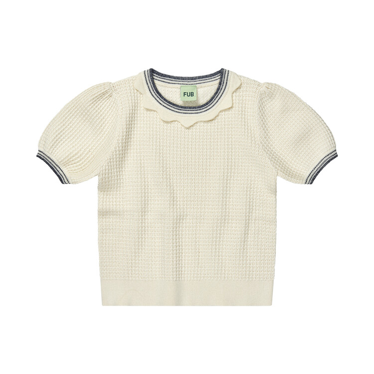 Made from organic cotton, this tee is knitted in a graphic structure and is designed with short wide puff sleeves, a striped neckline with a knitted lace edge and ribbed sleeve hems with decorative stripes. The tee has a regular fit.