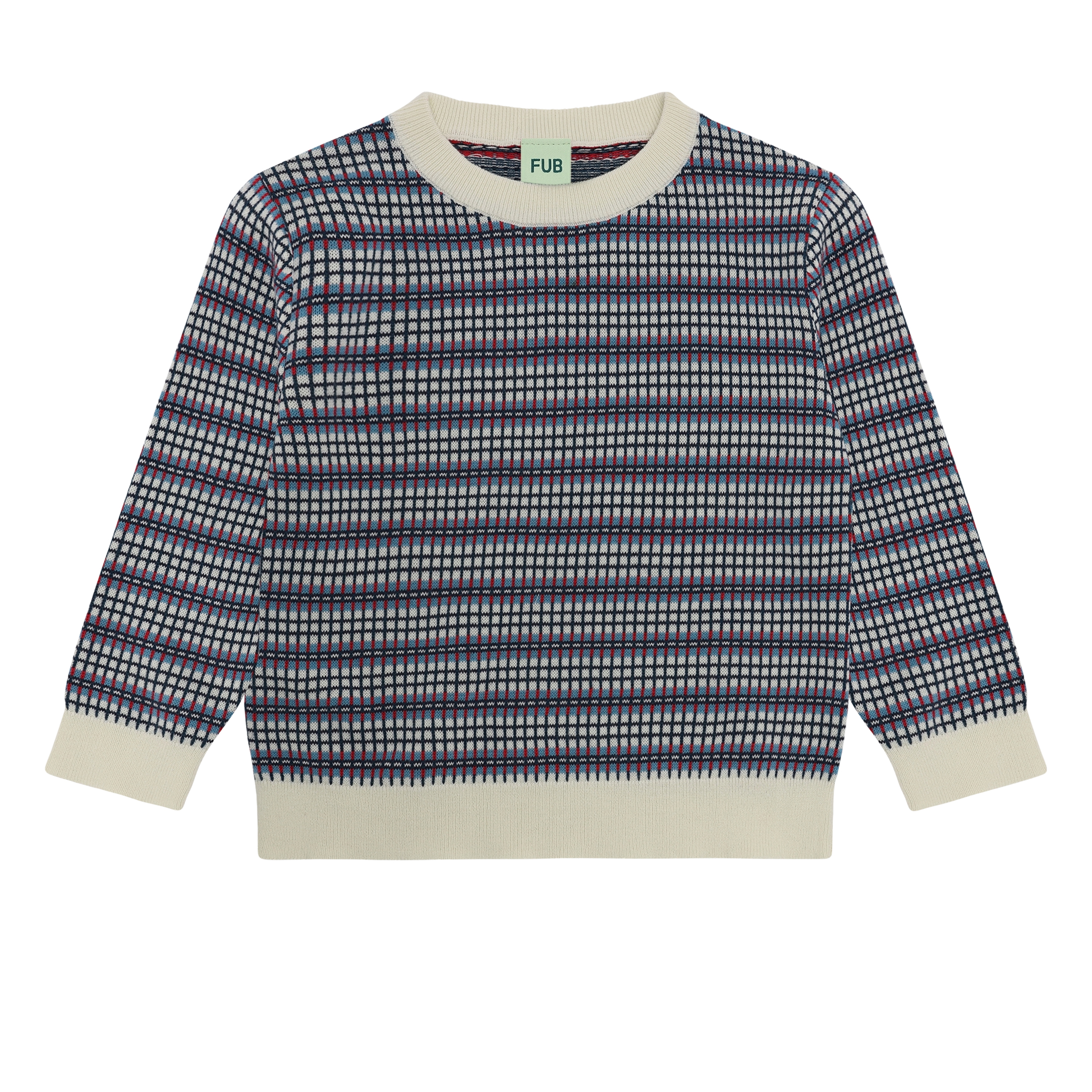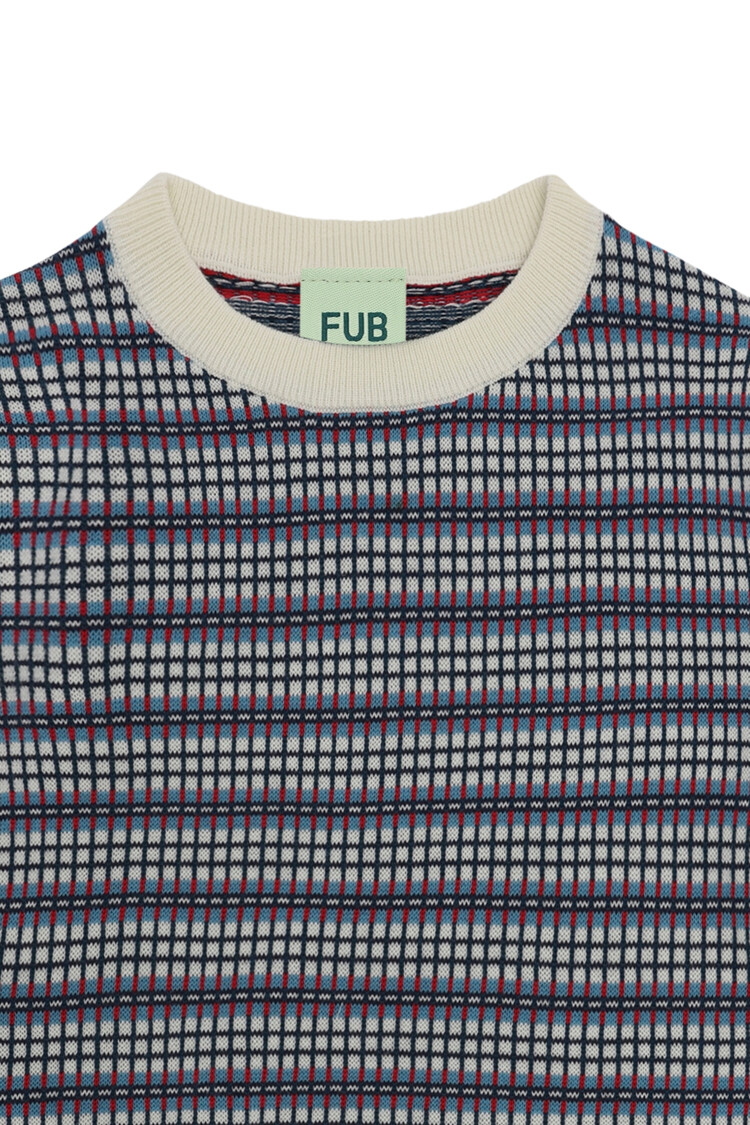 [Fubkids_26SS] Checked Crew (ecru/sea)