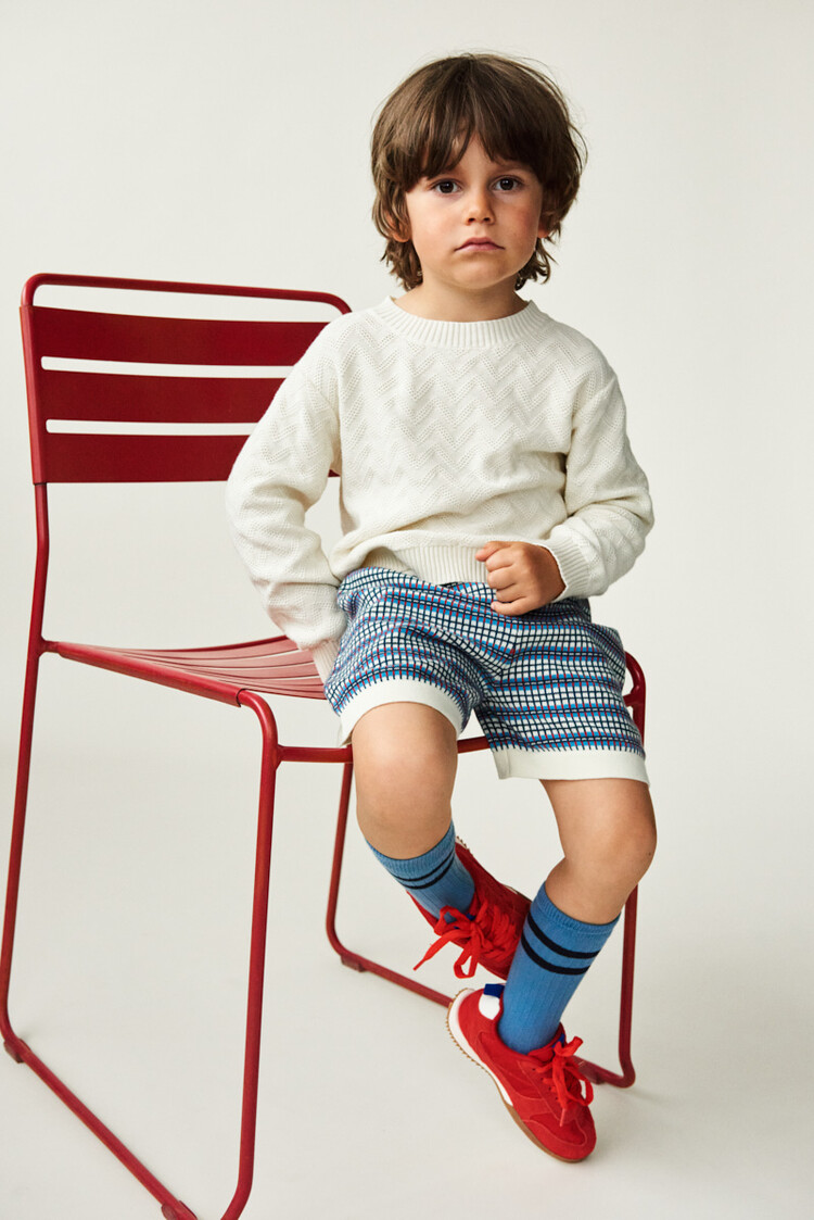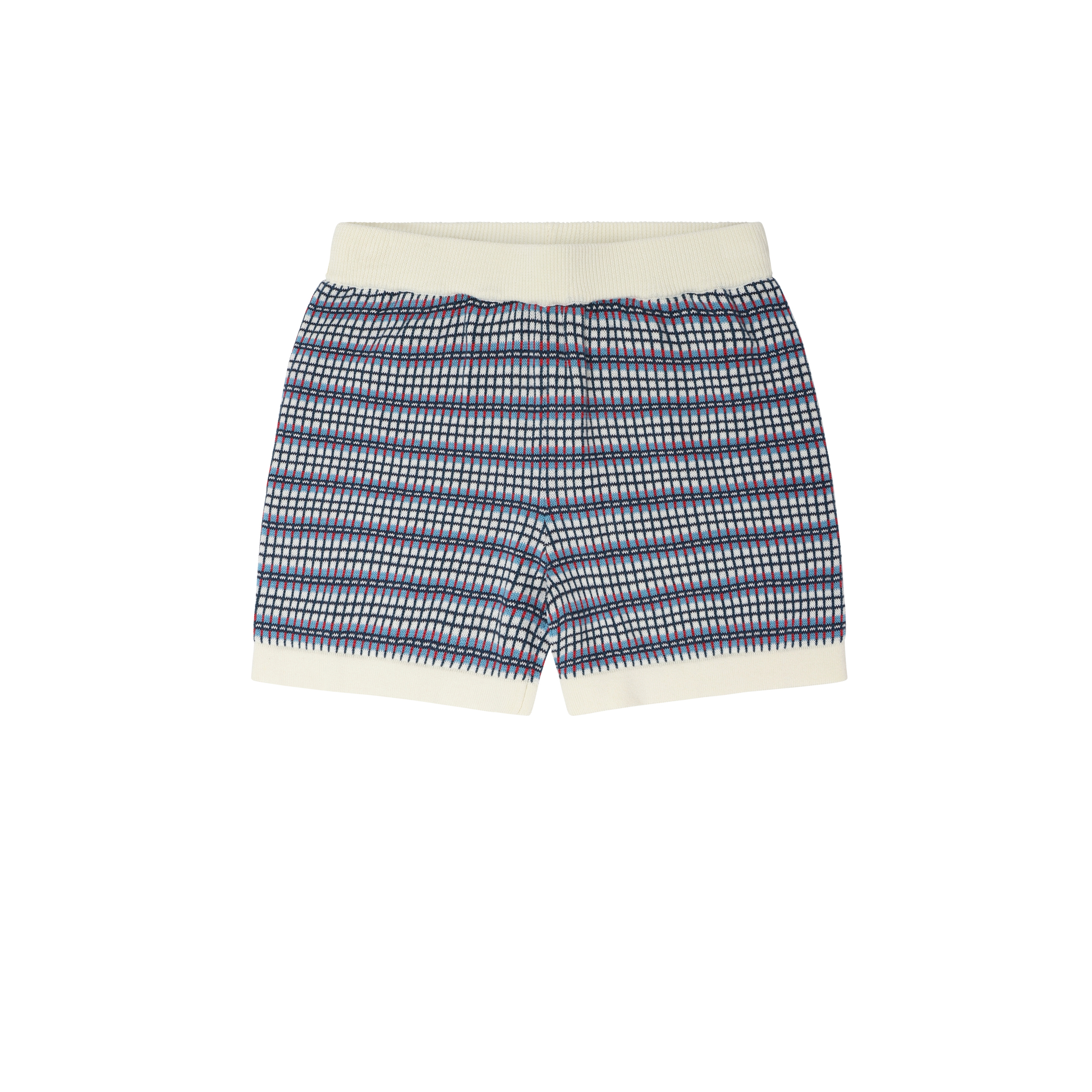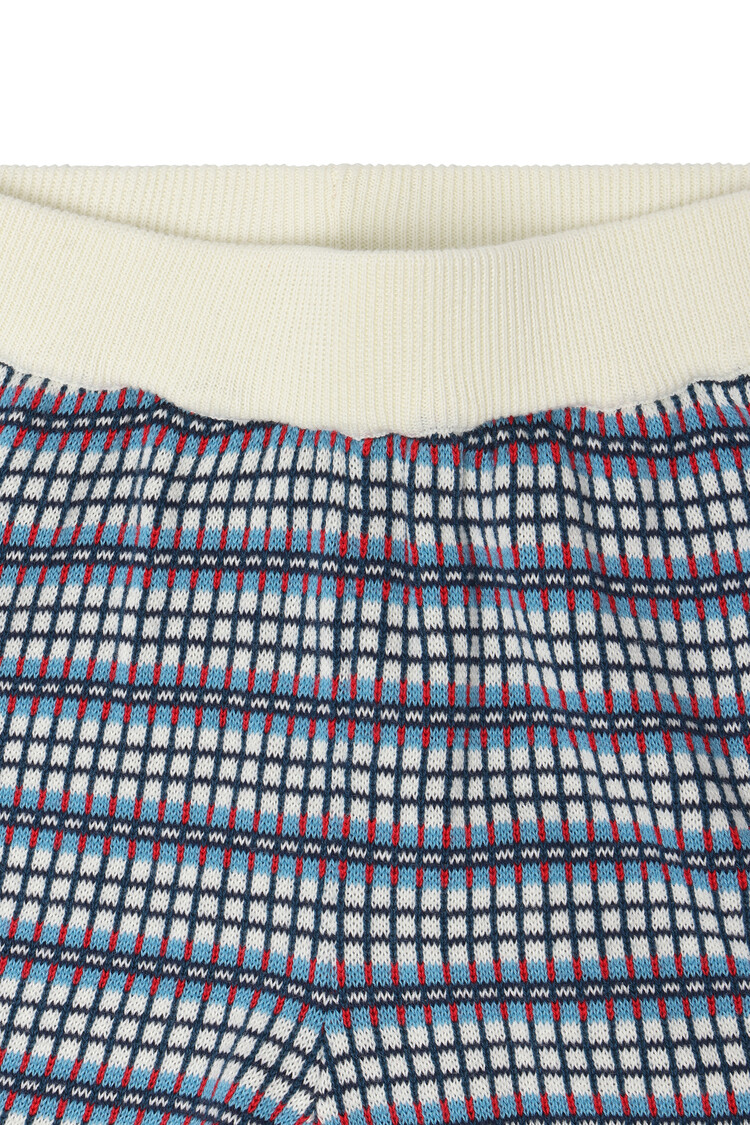 Made from organic cotton, and cut with a relaxed fit, low crotch, and straight legs, these shorts feature an elasticated waistband that ensures a comfortable and adjustable fit. The shorts are knitted in a graphic checked pattern and feature folded hems at bottom hems.