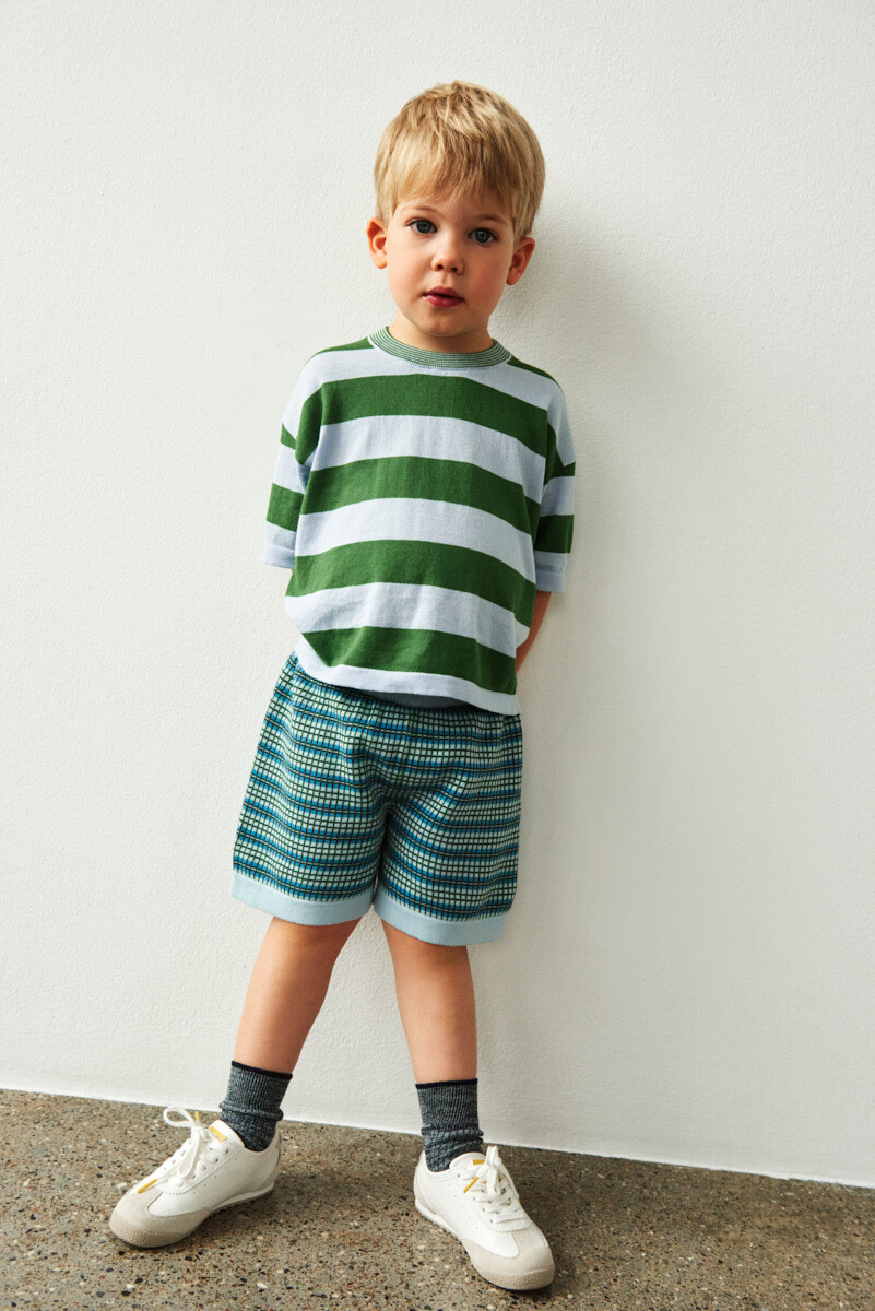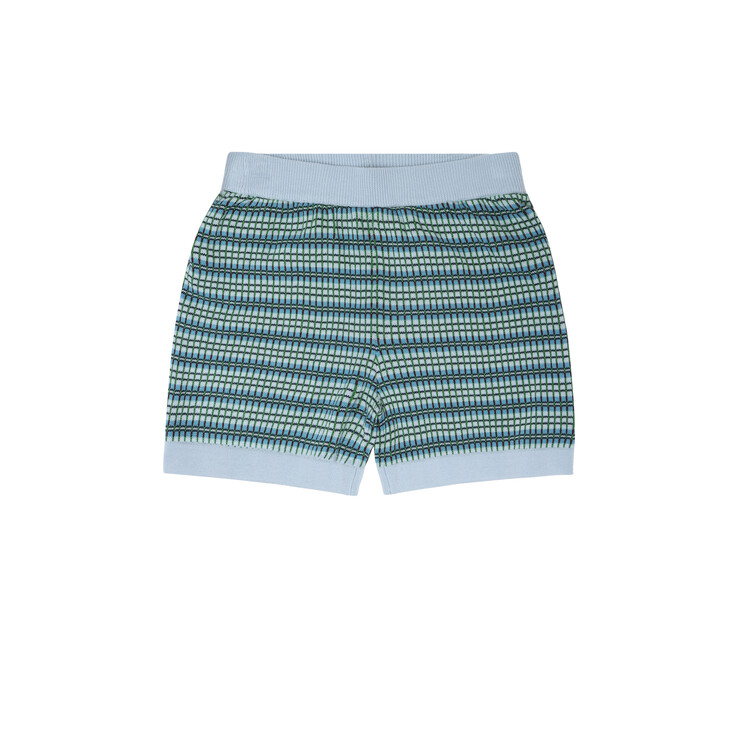 Made from organic cotton, and cut with a relaxed fit, low crotch, and straight legs, these shorts feature an elasticated waistband that ensures a comfortable and adjustable fit. The shorts are knitted in a graphic checked pattern and feature folded hems at bottom hems.