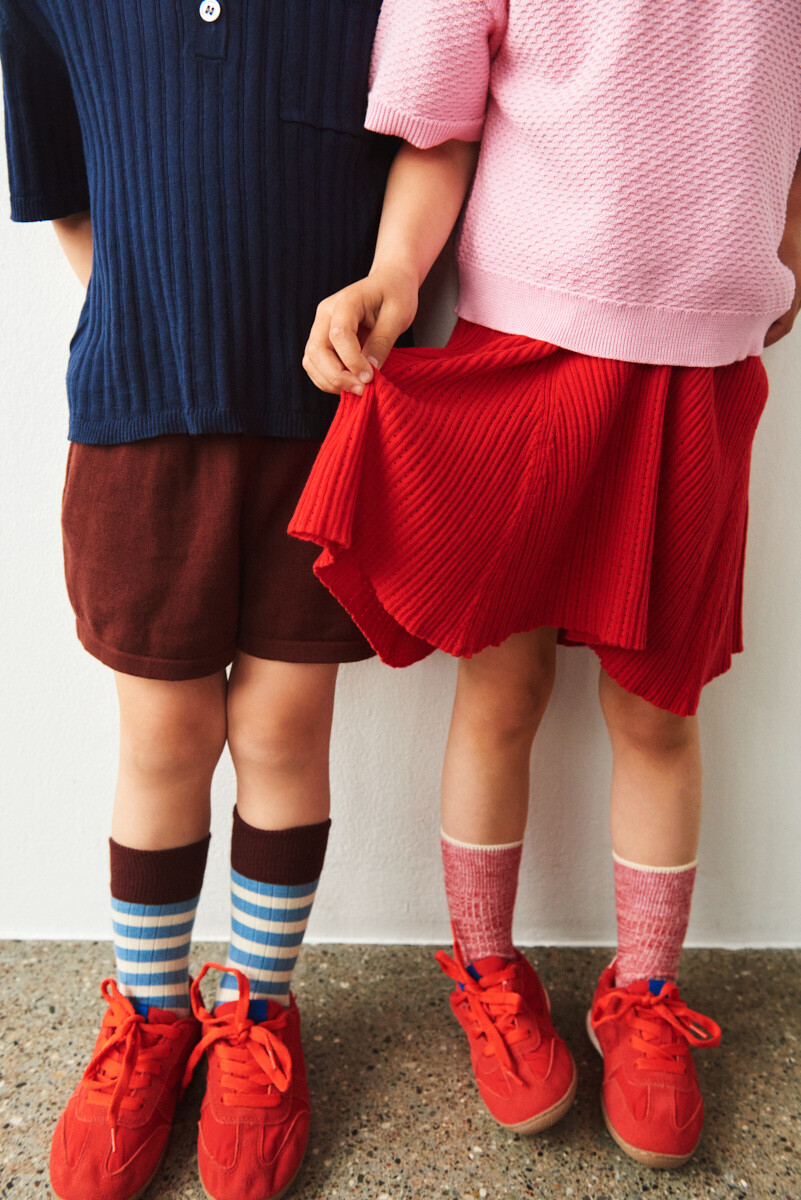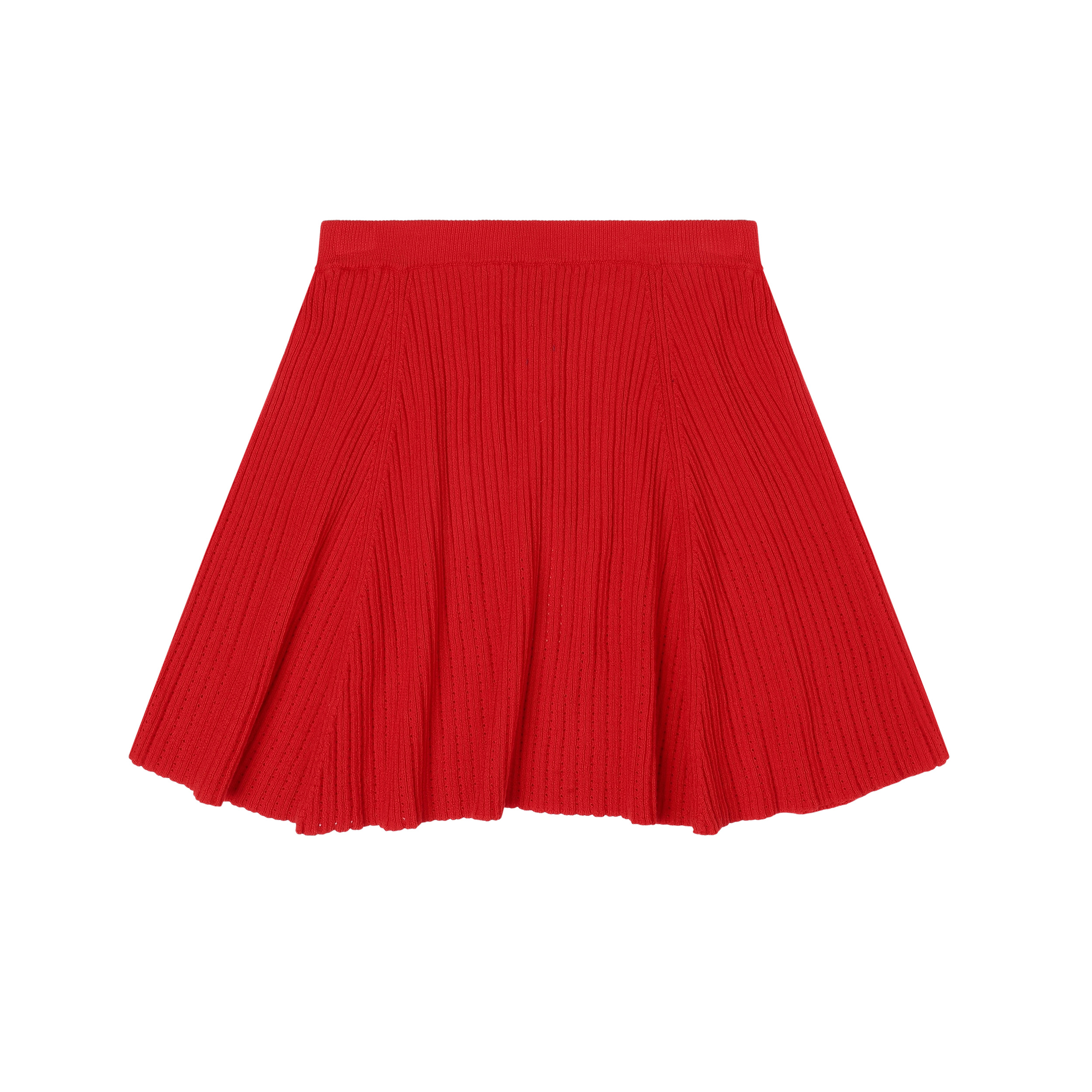Made from organic cotton, this knee-length skirt features an elasticated waistband that ensures an adjustable and comfortable fit. The skirt is knitted in a ribbed pointelle pattern and inserted godets create volume to the bottom of the skirt.