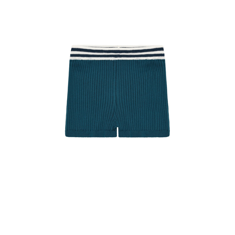 These shorts are knitted in a soft rib structure and feature an elasticated waistband with contrast stripes that ensures a comfortable and adjustable fit. Made from organic cotton and cut with straight legs, and rib hems.