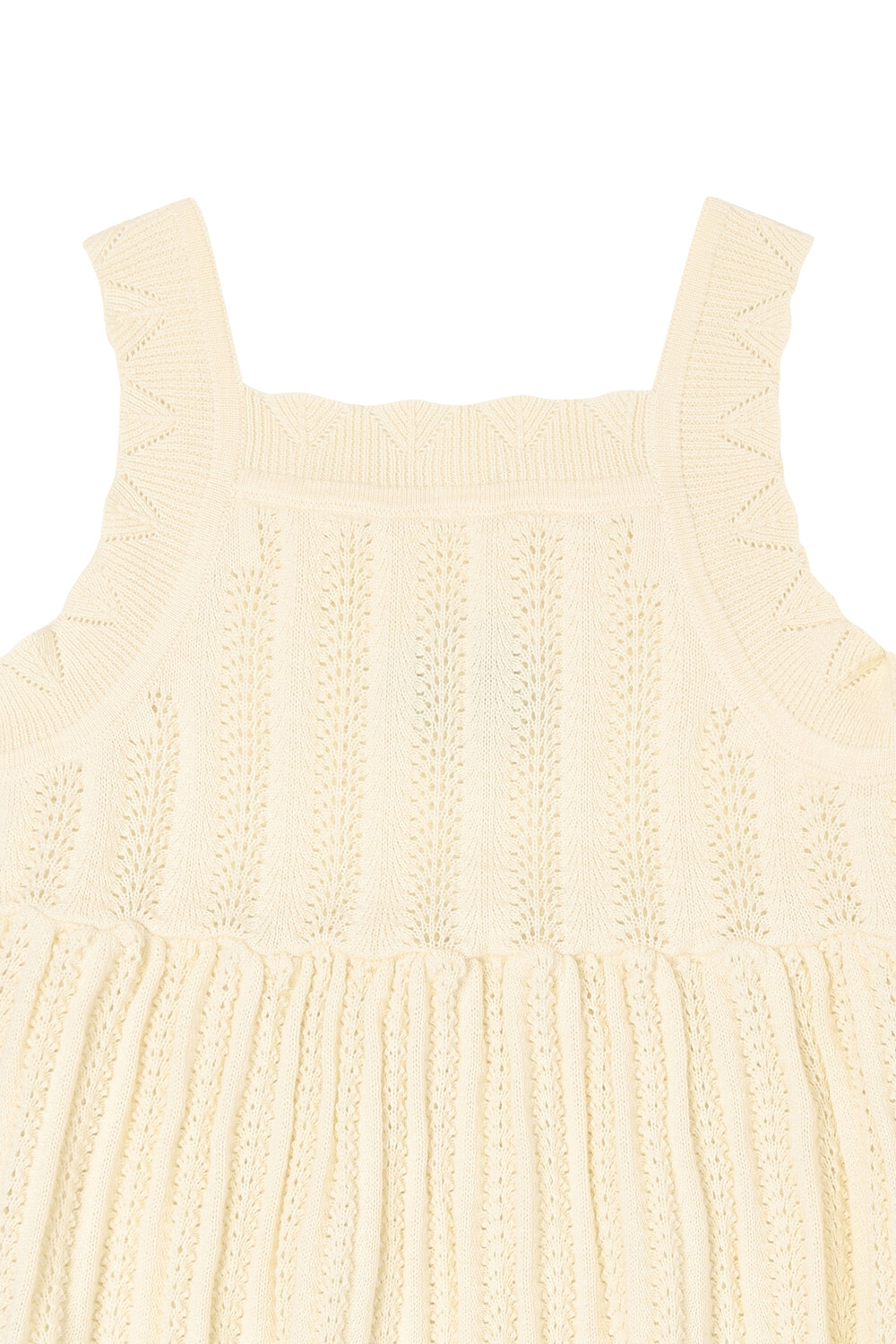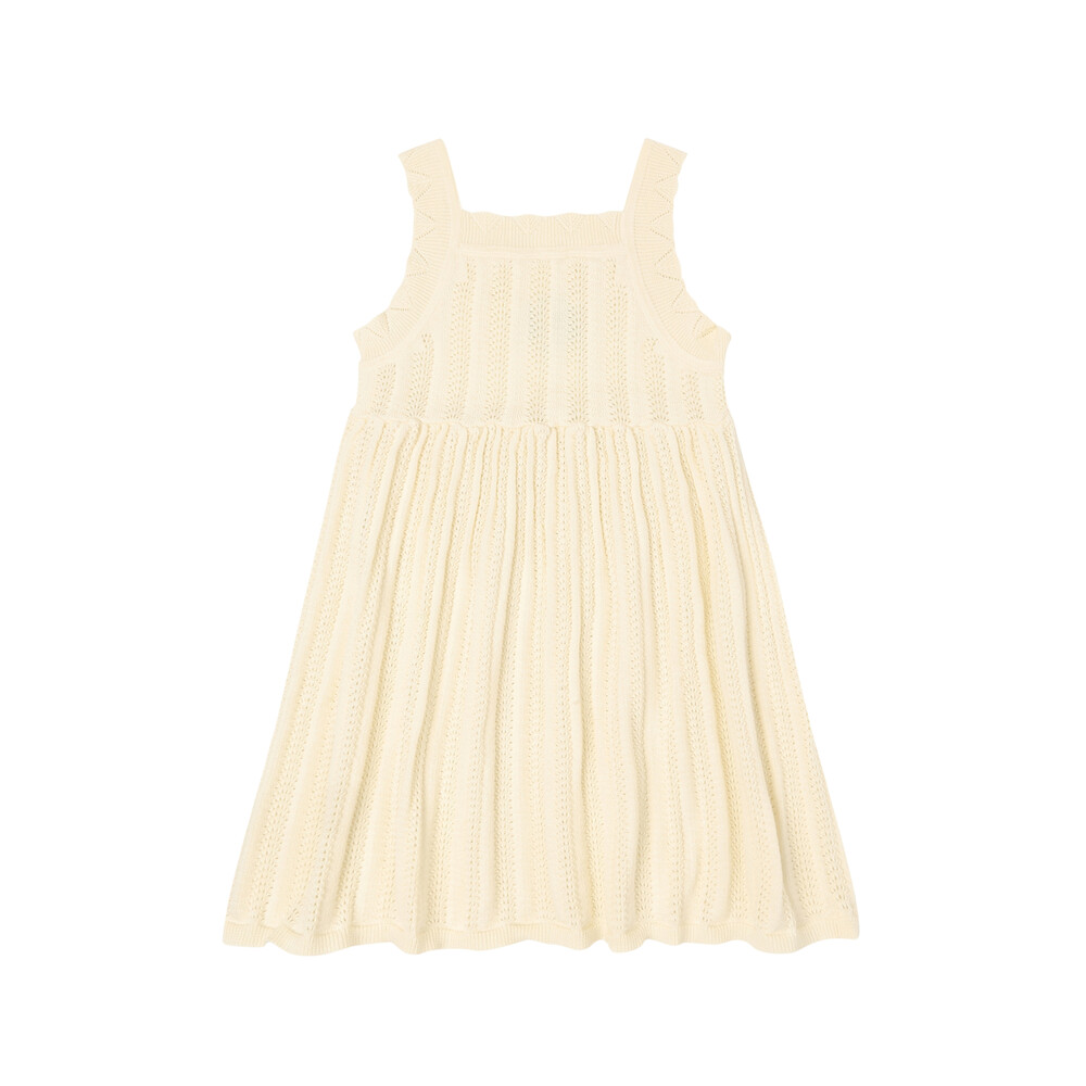 Made from organic cotton, this knee-length dress features decorative straps with pointelle details and small gatherings at the waist that create volume to the bottom of the skirt. The dress is knitted in a delicate pointelle structure.